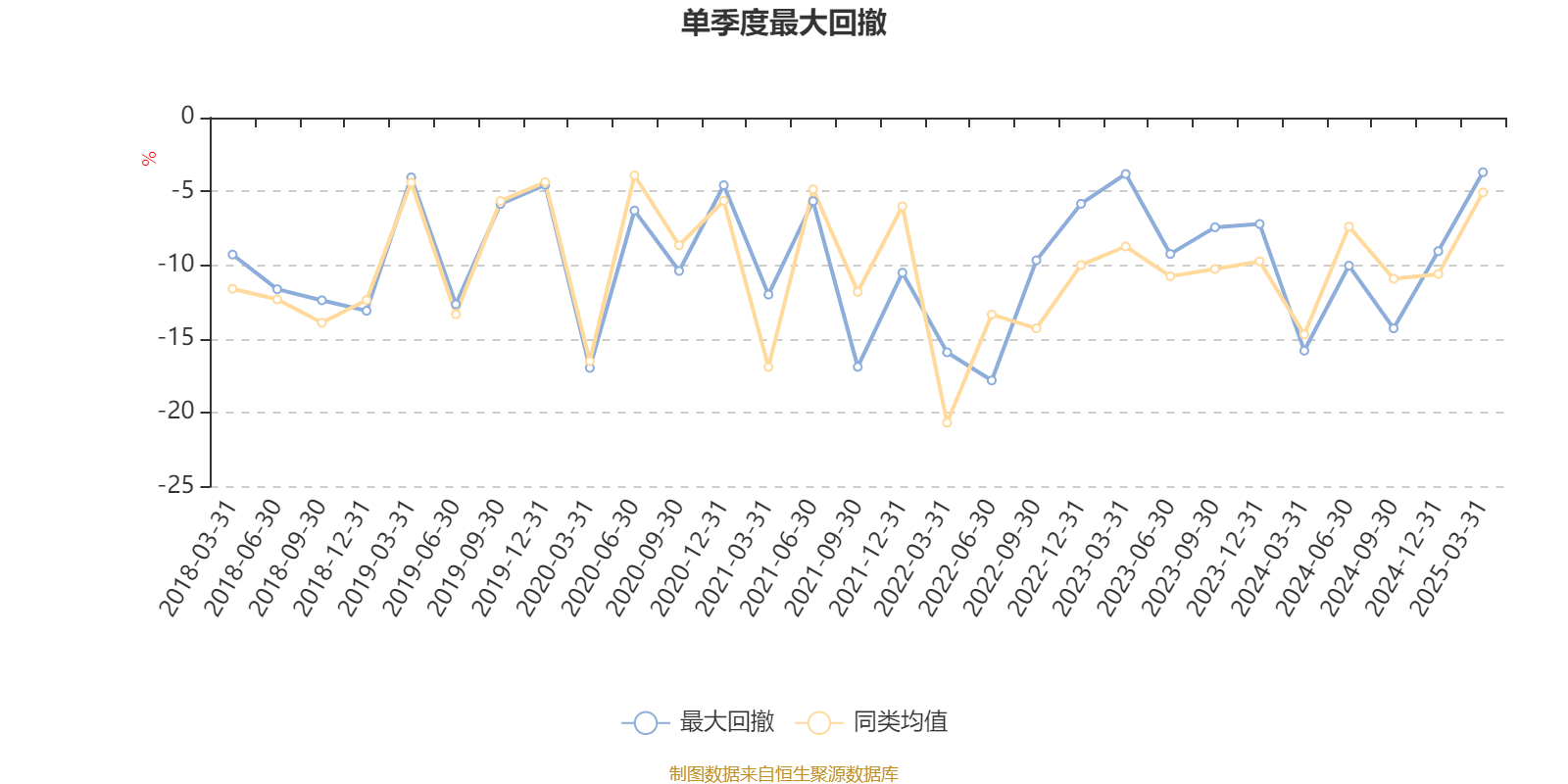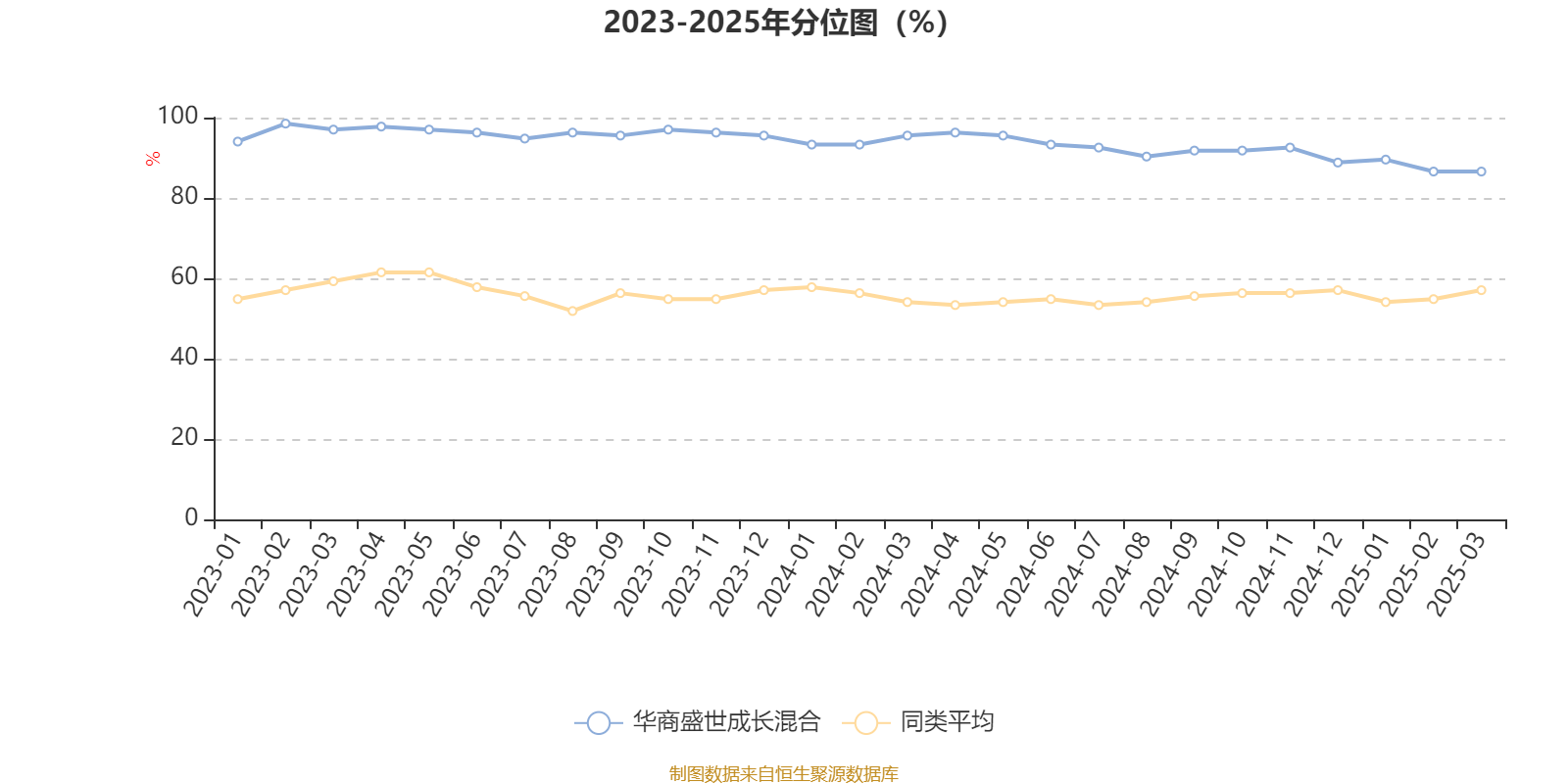 通过所选区间该基金净值增长率分位图,可以观察该基金与同类基金业绩比较情况。图为坐标原点到区间内某时点的净值增长率在同类基金中的分位数。