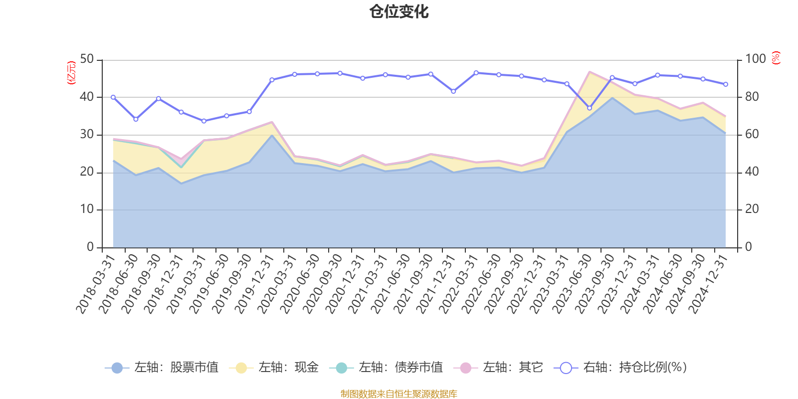 截至2024年12月31日,基金最近一年换手率约53.33%,持续低于同类均值。