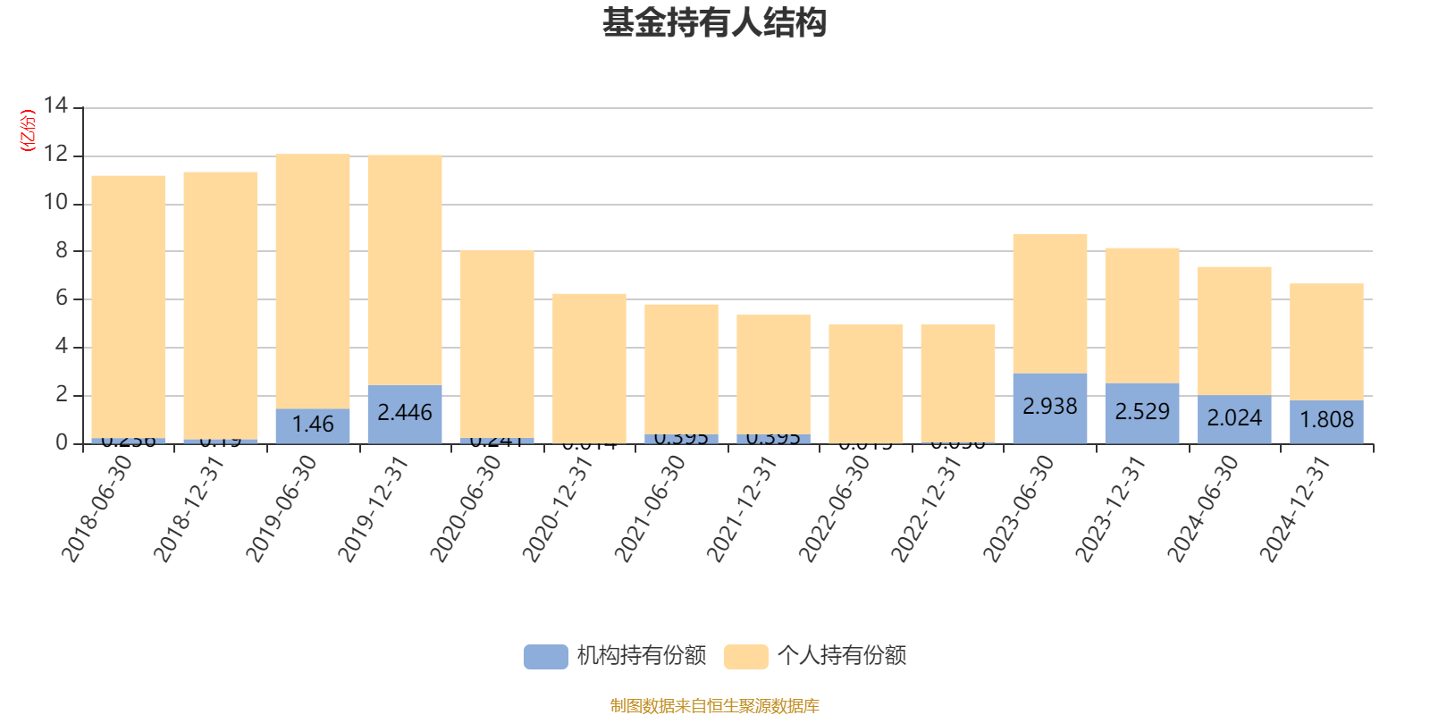 截至2024年12月31日,基金持有人共计11.54万户,合计持有6.67亿份。其中管理人员工持有2.21万份,机构持有份额占比27.11%,个人投资者占比72.89%。