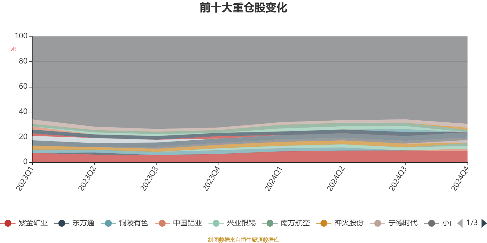 截至2024年末,基金十大重仓股分别是紫金矿业、中国国航、吉祥航空、宁德时代、兴业银锡、南方航空、小商品城、中国铝业、金诚信、柳工。